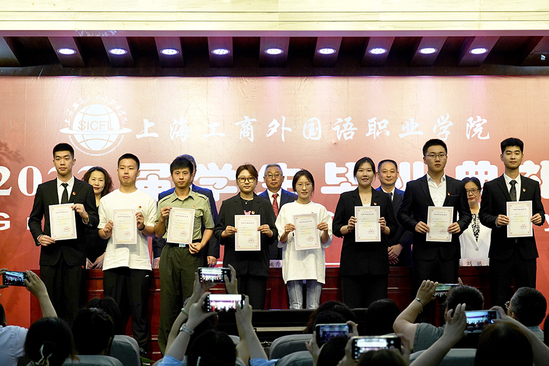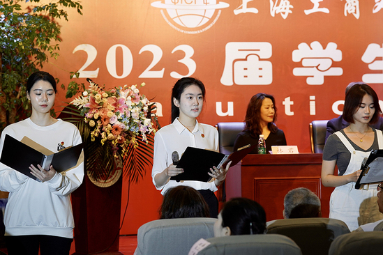 6月21日上午10点整,上海工商外国语职业学院2023届学生毕业典礼在四百人报告厅隆重举行。学校校长姚秀平、党委书记李月松、党委副书记、副校长段仁启,各职能处室负责人、二级学院(部)院长、主任、教职工代表和2023届优秀毕业生及家长代表出席了本次毕业典礼。典礼由学工部部长陈瑜老师主持。