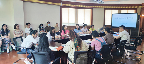 7月7日上午,新媒体与文法学院在五号楼三楼会议室召开全体教职工会议。