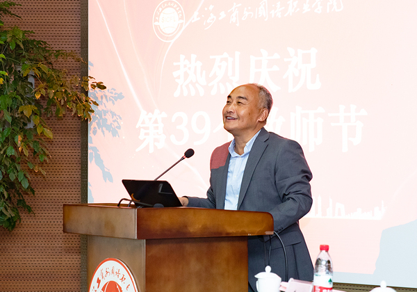 姚秀平校长为大会致辞,他首先代表学校向各位老师一年来所取得的成绩表示祝贺,并致以节日的问候和崇高的敬意,向新加入工商外大家庭的新教师表示热烈的欢迎。