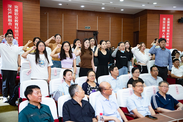 接着,大会举行庄重的新教师入职仪式,特别邀请创意设计学院院长李宪锋教授带领新教师庄严宣誓。铿锵有力的誓言既是使命,也是动力,必将引领年轻教师在教育航线上乘风破浪,披荆斩棘,砥砺前行。