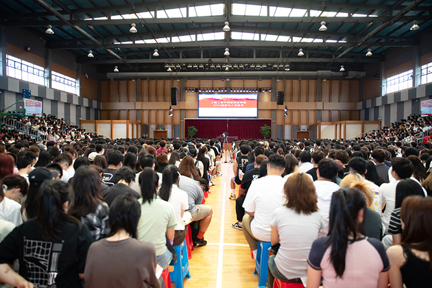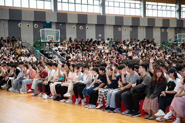 阳光微熹,秋风不燥,随着2023级新生的到来,9月的校园更加充满朝气与活力。9月9日,2023级新生入学教育通过线上线下相结合的方式进行,2000余名新生在南区体育馆现场参加入学教育,1000多名学生通过线上直播进行同步学习。入学教育由学生处副处长冉蓉老师主持。