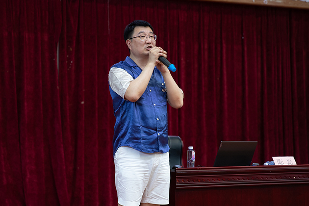 首先,学生处处长陈瑜老师以“遇见最好的自己”为题进行讲座,陈老师主要从“大学是什么?怎样度过大学生活?给大学新生的几个建议”三个方面进行剖析与探讨,旨在让全体新生对大学学习规则树立更加理性而正确的认识,对大学生涯与人生航向确立更加明晰而积极的规划。陈处长表示,大学时光是人生当中最宝贵的一段旅程,大家不仅身处在炙热的青春时代,还位于人格不断健全的人生阶段,希望大家不仅要拥有不懈怠、敢作为的胆量,更要练就和谐与共、包容谦和的肚量。