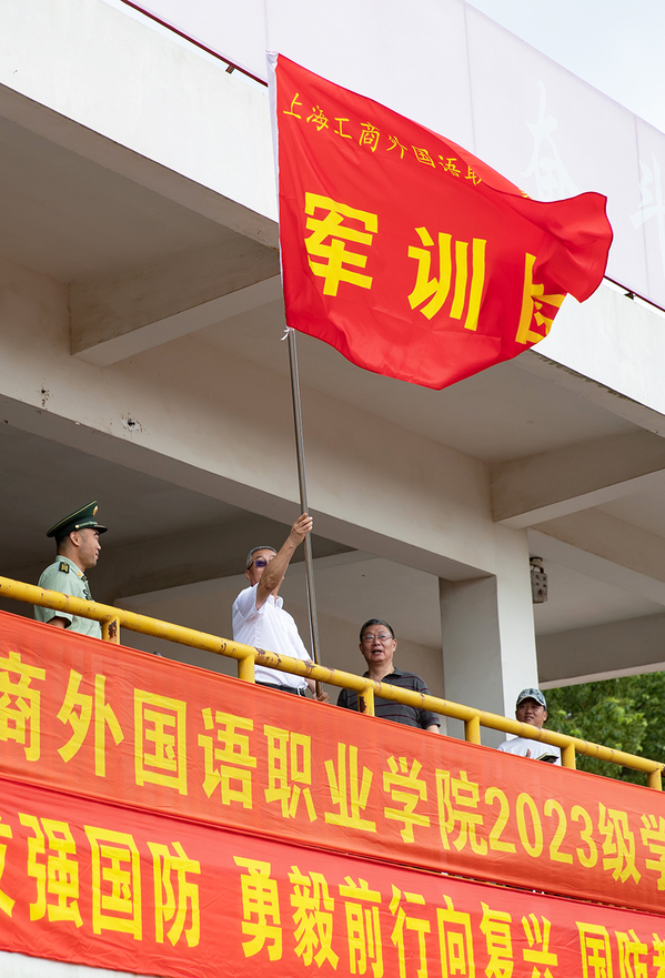 表演结束后,军训团团长发布上海工商外国语职业学院2023级新生军训开训命令,本年度军训工作正式拉开了帷幕。