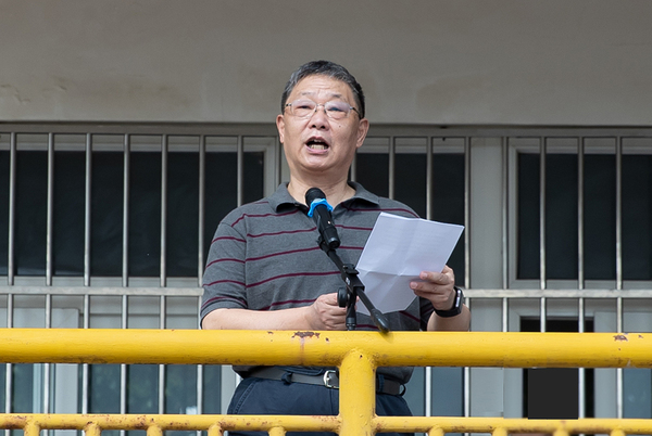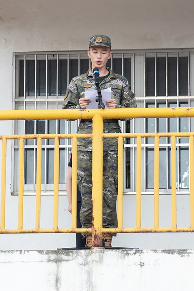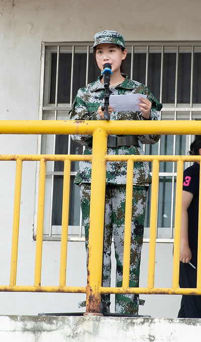 来自新媒体与文法学院五营三十一连的新生代表樊宁羽宣以及一营长吴国斌教官分别进行发言。