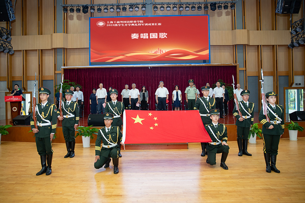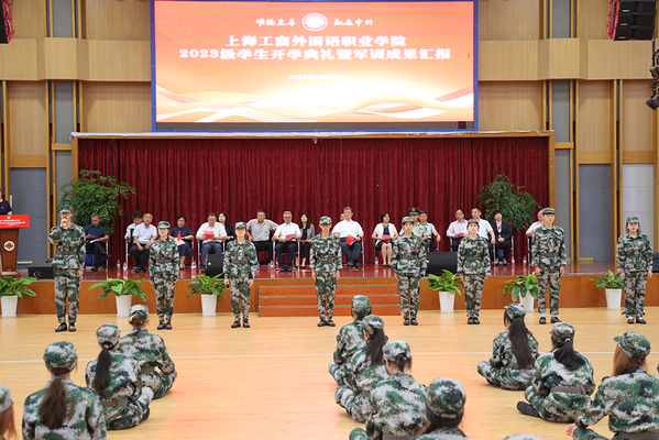9月22日上午,学校2023级学生开学典礼暨军训成果汇报在南区体育馆举行。学校校长姚秀平,党委书记李月松,军训团团长张付军,学校党委副书记、副校长段仁启,副校长张学龙、黄正,以及各二级学院院长、职能处室领导、各学院党总支(直属支部)书记、武警上海总队机动一支队官兵、新生辅导员与1000余名2023级新生代表在主会场南区体育馆参加了开学典礼,其余新生在各班级教室观看现场直播,一同见证这一美好时刻。学工部部长陈瑜主持开学典礼。