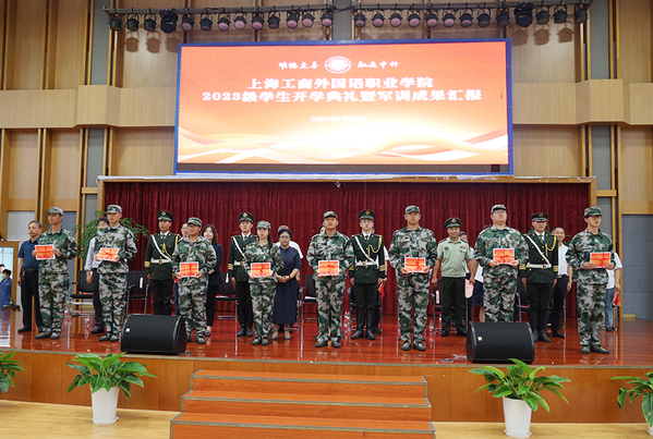 之后,军训团卜伟豪教官宣读优秀学员名单,各二级学院院长为优秀学员代表颁发荣誉证书。