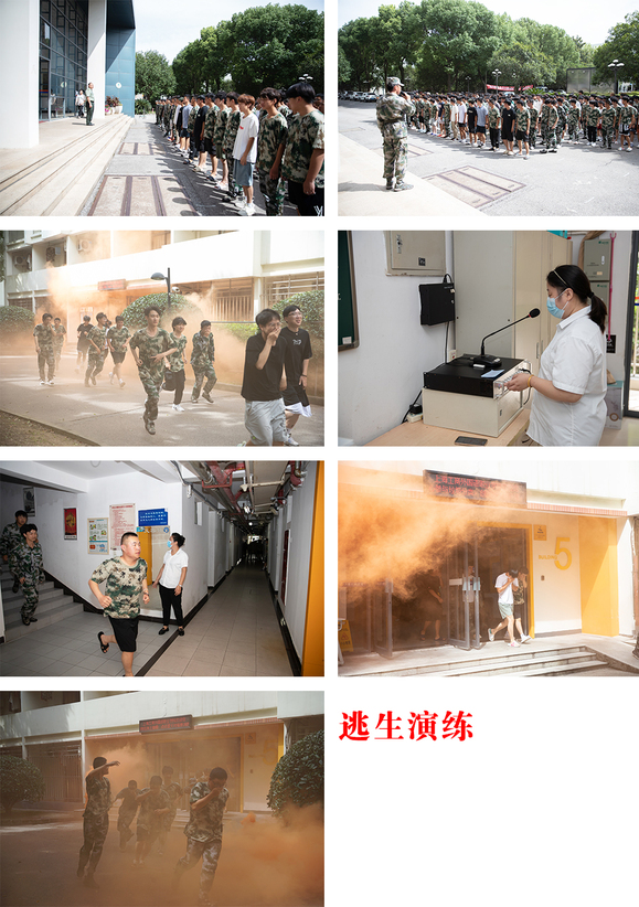 当警铃声响起时,北校区5号宿舍楼下的烟雾罐随之散发出橙色浓烟,同学们一手护头,一手捂住口鼻,有条不紊地弯腰低姿迅速撤离。逃生演练时,在每一层安排一名平安志愿者,协助同学们规范逃生技巧,分辨安全路线,有序撤离。最终,北校区5号楼同学在四分钟内全部撤离宿舍楼。
