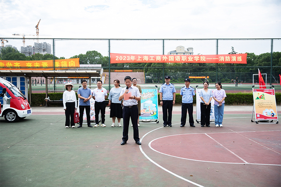 消防器材的讲解与使用演示于下午13点30分在中校区篮球场正式开始,参加此次活动的领导有校党委委员、后保处处长张永生,学工部部长、武装部长陈瑜,学生处副处长冉蓉,各二级学院副院长党支部书记,以及特邀嘉宾浦东公安分局临港高校派出所副所长张华警官、浦东公安分局临港高校派出所驻校民警吴惠忠警官,学校大一新生代表及餐饮从业人员。