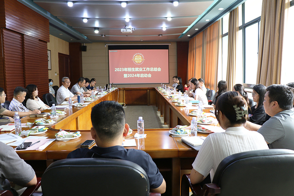 9月27日下午,学校召开2023年招生就业工作总结会暨2024年启动会,全面回顾2023年招生就业工作,就新形势下的高职专科招生、就业培养工作展开研讨与部署。校长姚秀平,党委副书记、副校长段仁启,各二级学院院长、行政副院长、招生就业处、以及毕业班辅导员参加会议。会议由段仁启主持。