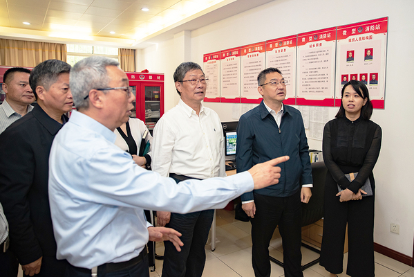 江书记一行首先到学校微型消防站和监控中心检查了学校安全技防措施,随后参观了学校国际会议中心和傅雷生平陈列馆等校园场馆。