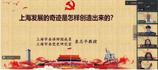 报告邀请了党史专家袁志平教授,袁教授是中共上海市委党史研究室研究员,上海市委讲师团党的二十大精神专家宣讲团成员,多年来承担了多项全国和上海市的相关课题工作,作为宣讲员获评“上海市优秀社科普及专家”荣誉称号和“上海市党的十九大精神宣讲优秀讲师”称号。