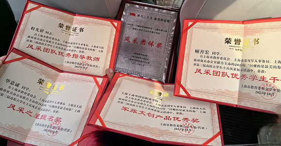 自活动开展以来,我校武装部积极参与,充分准备,最终获得了不错成绩。其中学校预备役军旅社荣获2023年“风采团队”奖,武装部程光崧老师获“风采团队优秀指导教师”奖,退伍士兵、军旅社社长顾善宏同学获“风采团队优秀学生干部”奖,华嘉诚同学荣获大学生士兵“风采之星提名”奖,汪桂冰同学的文创产品《人民的防护罩》荣获军旅文创产品优秀奖。