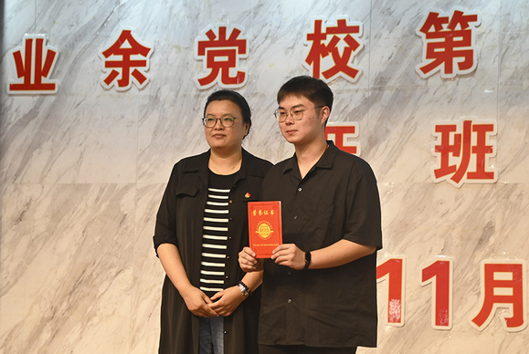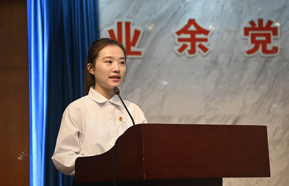 来自商学院的刘子源同学作为第41期优秀学员代表发言,他分享了自己在业余党校的学习心得及收获,鼓励新学员珍惜党校学习机会,严格自律,不断加深对党的理论知识的学习,认真学习党的光辉历史与精神品格,将理论所学化作生活所行,在志愿服务中不断增强为人民服务的能力,从而不断增强党性修养,树立远大志向。