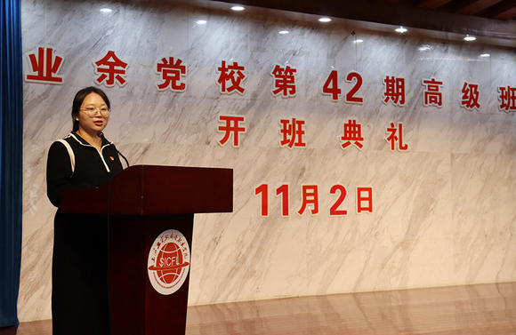 11月2日下午4点,业余党校第42期高级班开班典礼在四号楼四楼报告厅举行。学校党委书记李月松,副书记、副校长段仁启,宣传部部长王秋凤、学工部部长陈瑜,各党总支、直属党支部书记、各二级学院(部)业余党校负责人、第41期优秀学员代表与第42期全体学员参加了开班典礼。典礼由业余党校负责人冉蓉老师主持。