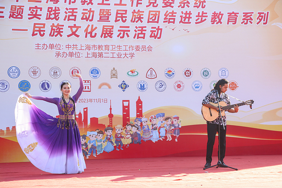 为深入宣传贯彻党的二十大精神,推进新时代党的民族工作高质量发展,铸牢中华民族共同体意识。由上海市教卫工作党委主办、上海第二工业大学承办的2023年上海市教卫工作党委系统“家在上海”主题实践活动暨民族团结进步教育系列——民族文化展示活动11月1日在二工大举行。33所高校的近千名各民族师生参加了本次民族文化展示活动。本次活动包含民族文艺表演、民族特色文化展示、民族游戏互动体验、上海特色美食展等内容。