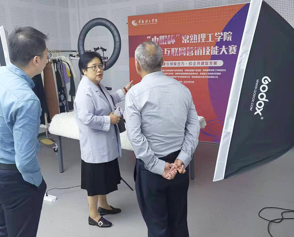 调研会上,常熟理工学院副校长张根华首先就现代产业学院的建设和人才培养模式的经验做法进行了介绍与分享。随后,两校相关二级学院负责人和职能处室负责人就各自工作中关于产教融合的难点及经验进行了座谈与交流。会后,我校黄正副校长一行参观了电气与自动化工程学院产教融合中心、电商直播室、学生实训室等。现场感受了常熟理工师生的上课状态、实训室管理的制度规范、学校产教融合的创新环境,参观过程中,两校相关负责人进行了热烈的经验交流与探讨。