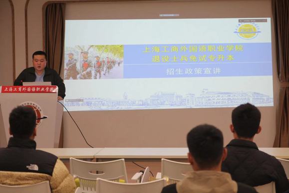 为认真贯彻落实上海高校退役大学生专升本政策宣讲会精神,做好2024年退役大学生免试专升本工作,12月6日晚,武装部在四号楼一楼辅导员工作坊召开退役士兵免试专升本政策专题宣讲,本次会议分为线上和线下共计40余名退役士兵同时进行。