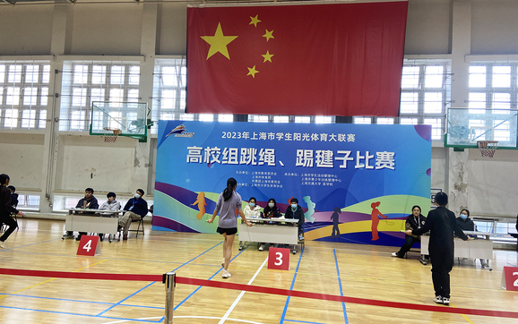 一年一度的上海市学生阳光体育联赛(高校组)跳绳踢毽子竞赛是由上海市教委、上海市体育局和共青团上海市委员会主办,上海市学生活动管理中心、上海市青少年训练管理中心、上海交通大学承办的大型赛事。本次比赛有来自上海交通大学、复旦大学、东华大学等24所高校超700名学生参加,共有跳短绳、跳长绳、踢毽子、双摇接力、毽子对踢5个项目。