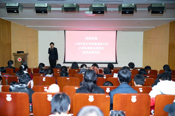 12月14日上午,上海开放大学附属高级中学计算机信息分校余六兴校长率120名师生到我校进行参观交流。学校副书记、副校长段仁启接待了余六兴校长一行。招生就业处处长武桂玲主持招生宣讲会,招生就业处副处长陆毅英等参加陪同。
