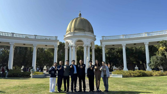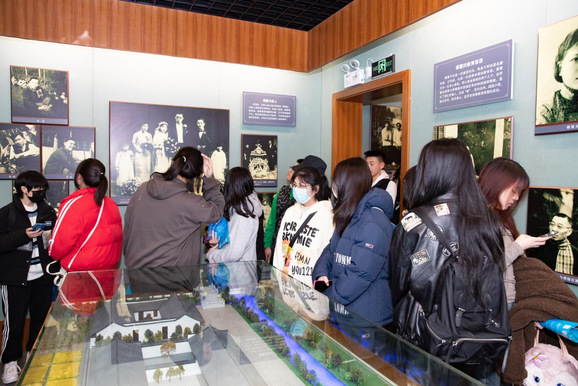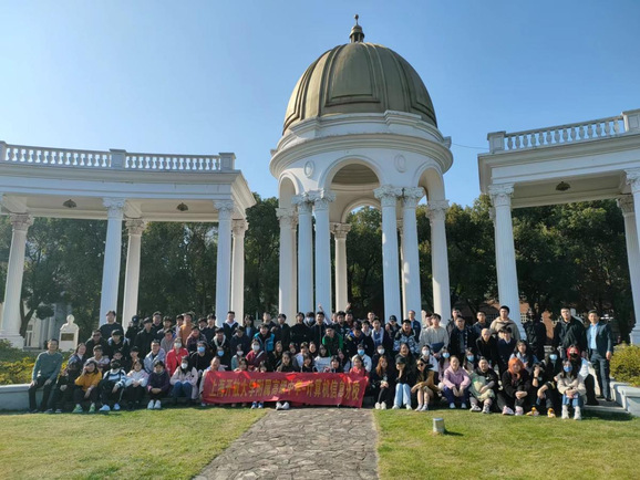 随后,余六兴校长及120名师生在招就处处长武桂玲的带领下参观了傅雷生平陈列馆,国际会议中心、外语情景实训中心、体育馆等学校基础设施。最后,在我校欧式文化长廊合影留念。
