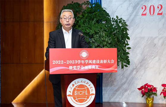 为了充分调动广大工商外学子的学习积极性,激励大家刻苦学习、潜心专业发展,不断提高综合素质,促进学生德、智、体、美、劳全面发展,学校设立学校奖学金和校外竞赛奖奖学金。经过各院(部)初审、推荐,学校学生奖励(资助)评审委员会评审,报学校学生奖励(资助)领导小组通过,共698名同学获得2022-2023学年学校奖学金,134人次获得2022-2023学年校外竞赛奖学金,学校党委副书记、副校长段仁启宣读了表彰决定。