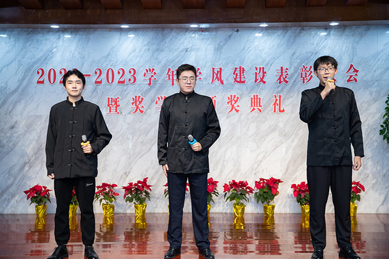 12月14日下午,我校2022-2023学年学风建设表彰大会暨奖学金颁奖典礼在四百人报告厅举行。学校校长姚秀平,党委书记李月松,党委副书记、副校长段仁启,教务处处长张建发、各二级学院(部)院长、主任、各二级学院学生工作负责人、全体辅导员及学生代表出席颁奖典礼。典礼由学生处处长陈瑜主持。