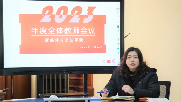 为进一步提高教育教学质量,加强师德师风建设,培育更多优秀人才,新媒体与文法学院于2023年12月20日中午在五号楼三楼会议室召开2023年度期末会议,学院全体教职工出席本次会议。