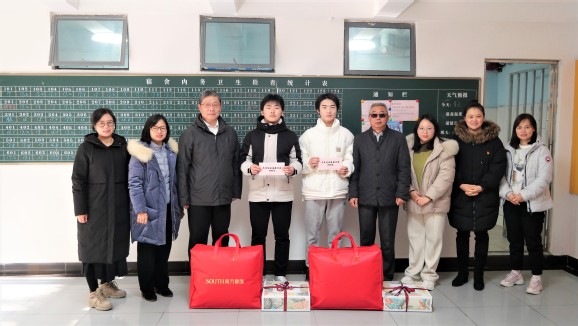 1月4日中午,学校校长姚秀平、学校党委书记李月松、学生处副处长冉蓉、相关学院学生工作负责人与辅导员一行前往我校北区学生宿舍慰问家庭经济困难学生代表,为同学送去冬被、水果与慰问金。慰问期间,学校领导与同学进行了亲切交谈,交谈中了解了学生家庭情况、父母身体状况、本人学习情况及寒假去向等,同时,还与师生分享了年轻时期的艰苦生活经历,鼓励同学要把暂时的困难化作学习的动力,保持积极健康、乐观向上的生活态度,克服困难,自强不息,奋发图强。受访学生对学校给予的关心表示感谢,纷纷表示会努力学习,自强自立,尽自己所能回报社会、回报学校、回报父母。