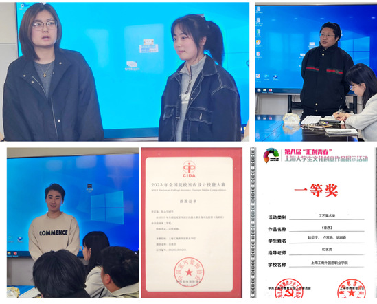 在职业技能竞赛方面,李若愚、刘心宇两位同学荣获2023年全国院校室内设计技能大赛团体二等奖;陆贝宁、卢常艳两位同学分别在第八届汇创青春工艺美术类竞赛中获得一等奖。这些成绩的取得,既得益于老师的精心指导,也离不开同学的不懈努力。四位同学从赛前准备到成品展示的全过程进行了经验分享,并针对同学们的提问提供了独到的见解。