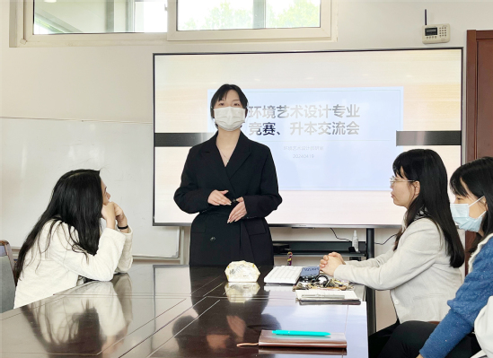 4月19日中午,在李宪锋院长指导下,创意设计学院于32413会议室成功举办环境艺术设计专业“专升本与竞赛经验分享交流会”。会议由副院长、环境艺术设计专业主任水英教授,以及专业骨干教师苏冰洁和毕业班辅导员黄二涛共同参与。