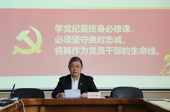 为扎实推进党纪学习教育走深走实,4月24日下午,学校党纪学习教育专题报告会在八号楼二楼会议室举行,党委书记李月松主持并作《坚守纪律底线,强化规矩意识》主题报告。