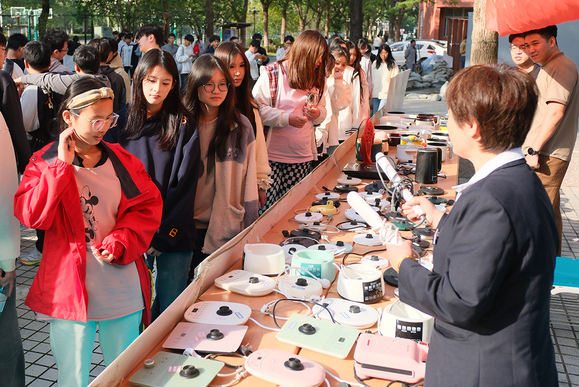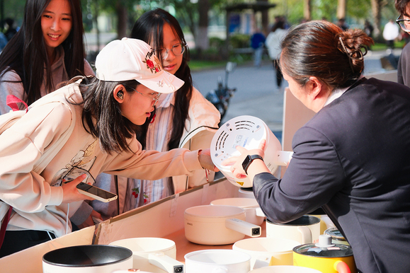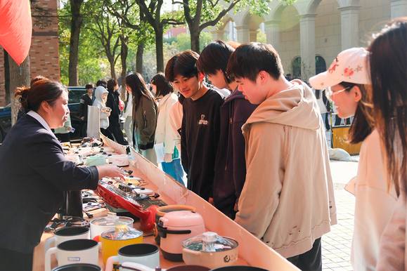 中校区活动展区集中展示各类违章电器,来往同学纷纷驻足观看和了解询问。学生公寓管理人员现场为学生宣讲消防安全知识,警示宿舍违规电器引发火灾的风险,叮嘱同学们消防安全从我做起、校园安全人人有责。
