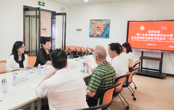7月14日下午,瑞士乌里州教育委员会主席彼得·伽马(Peter Gamma)、乌里州职业教育学院院长克里斯汀·施塔德勒(Christine Stadler)一行七人访问我校。代表团成员还包括BVIS教育集团主席周叡(Rui Zhou)、BVIS高等教育学院首席执行官兼瑞士阿尔特多夫国际学校校长汉斯·赫利曼(Hans Hürlimann)。副校长谢敏、国际交流处处长李爱群及干事王晓珏陪同参观并与来宾进行座谈交流。