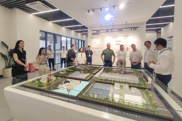 随后,代表团前往思博学院产业现场工程师培养基地考察。作为校企协同育人的重要成果,基地集中体现了我校与中建八局在课程共建、实训设备投入、师资互聘等方面的深度合作。中建八局驻校负责人详细介绍了基地建设进展及育人成效,指出学生在真实工作环境中有效提升了实践能力与职业素养。伽马主席对此给予充分肯定,认为这一模式紧密契合产业需求,是培养高素质技术技能人才的有效途径。