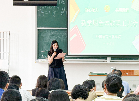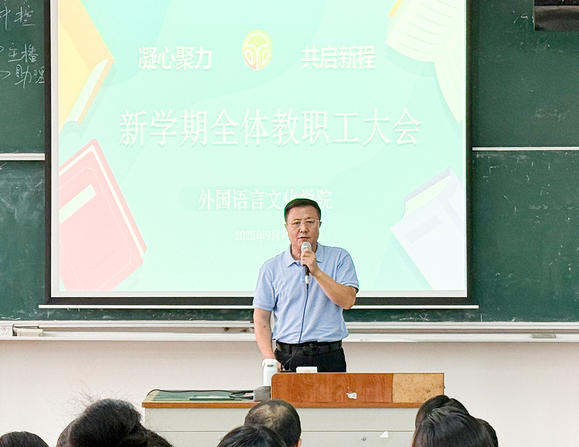 为全面部署新学期各项工作,进一步统一思想、凝聚共识,外国语言文化学院于9月7日召开新学期全体教职工大会。学院领导班子及全体教职员工齐聚一堂,围绕“凝心聚力、共启新程”主题,共同谋划学院发展蓝图。会议由副院长孟晶主持。