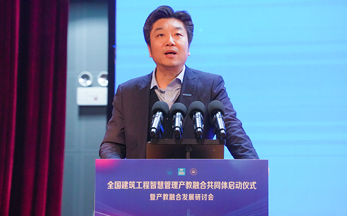 启动仪式后,产教融合发展研讨会如期举行,学校工学院名誉院长、特聘专家张建荣教授主持研讨会。同济大学经济与管理学院施骞教授、中国建设教育协会常务理事兼职成教专委会常务副主任赵研教授、广联达科技股份有限公司副总裁钱锋,分别围绕《数智时代工程项目管理的模式创新》《行业在转型专业要优化》《智能建造发展趋势与行业实践应用》作主题报告,为共同体发展与行业转型提供前沿思路与实践参考。