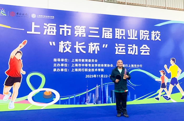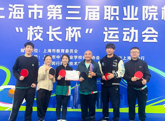 11月23日,上海市第三届职业院校“校长杯”运动会乒乓球男女混合团体赛在上海闵行职业技术学院落幕。校领导黄正带队参赛,代表队以“六战四胜”的战绩斩获团体第五名,校领导黄正获“优秀运动员”称号。
