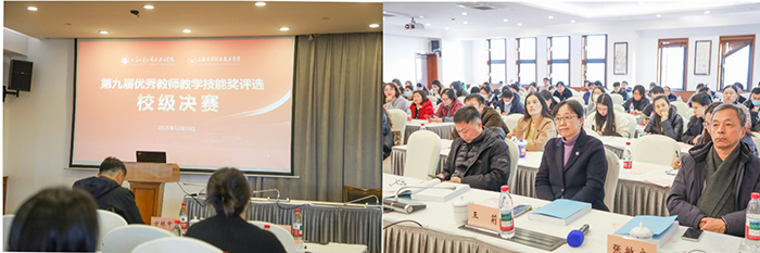12月16日下午,上海工商外国语职业学院与上海思博职业技术学院共同举办第九届优秀教师教学技能奖校级决赛。经各二级学院精心组织初赛、择优推荐,17位教师脱颖而出入围校级决赛。副校长张学龙教授参加活动并致辞。本次大赛特邀上海农林职业技术学院党委书记蔡红教授、上海电子信息职业技术学院副校长方林中教授、上海健康医学院教务处处长王莉教授,联合学校校长助理钱芝网教授、督导张敏良教授和吴子岳教授等七位专家组成评审组。两校各二级学院分管教学副院长、骨干教师代表及全体参赛教师共计百余人到场观摩学习,在切磋交流中互学互鉴、共同成长。