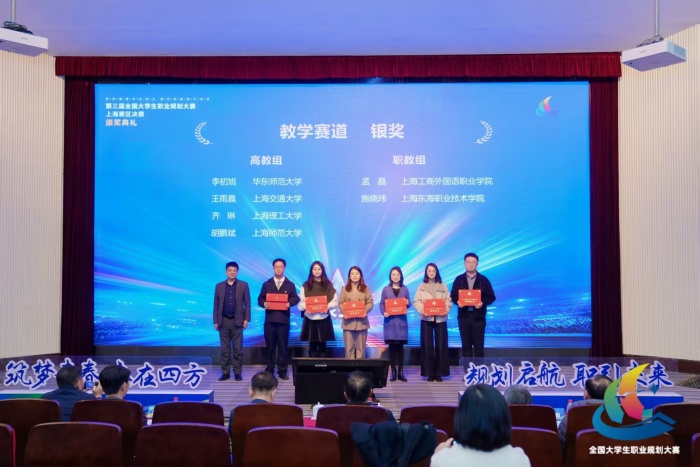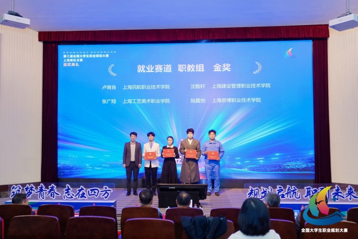 除核心金奖突破外,我校学子与教师在本次赛事中还多点开花、收获颇丰:应用外语学院孟晶老师斩获教学赛道职教组银奖;应用外语学院西班牙语专业王思源同学、智能建造与制造学院工程造价(中高职贯通培养)专业应志辰同学、徐悲鸿艺术学院游戏艺术设计(中高职贯通培养)专业李明慧同学荣获成长赛道职教组铜奖;卢小希、张彬晨两位老师获评优秀指导教师;上海思博职业技术学院凭借完善的组织保障、突出的赛事成果,被授予优秀组织奖。一系列荣誉的取得,充分彰显了我校生涯教育与就业指导工作的扎实成效,也体现了“以赛促学、以赛促教、以赛促就”的赛事育人理念。