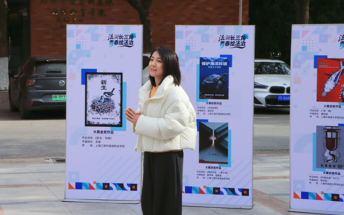 据悉,在本年度赛事中,上海工商外国语职业学院学子表现突出,共斩获金奖1项、银奖1项、铜奖4项以及优秀奖6项,成绩亮眼。荣获优秀指导教师称号的王玉老师在现场为师生们解读了部分获奖作品的创作思路与法治内涵,展示了同学们如何将严谨的法律条文转化为富有感染力的艺术表达,体现了当代青年对法治社会的观察与思考。