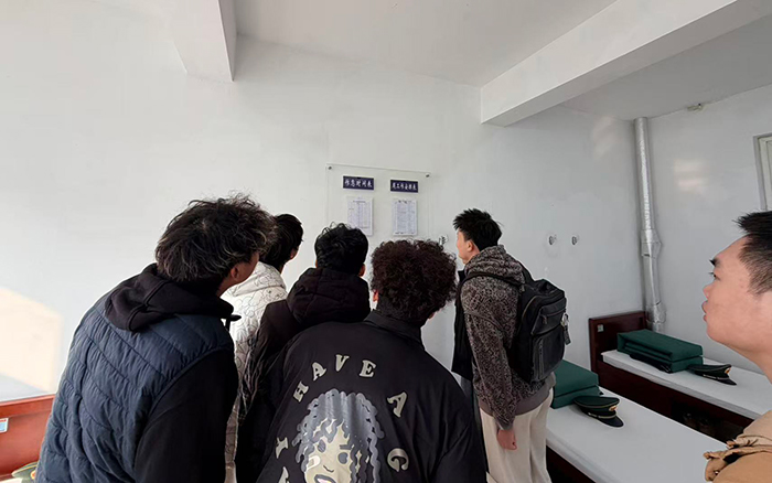 随后,同学们参观了部队的内务与荣誉室。方正如一的“豆腐块”、整洁划一的物品摆放,彰显了部队严谨细致的作风;荣誉室内陈列的锦旗、奖牌以及关于感人事迹的相关介绍,无声诉说着这支队伍取得的成绩与荣誉,令在场学生的敬佩之情油然而生。