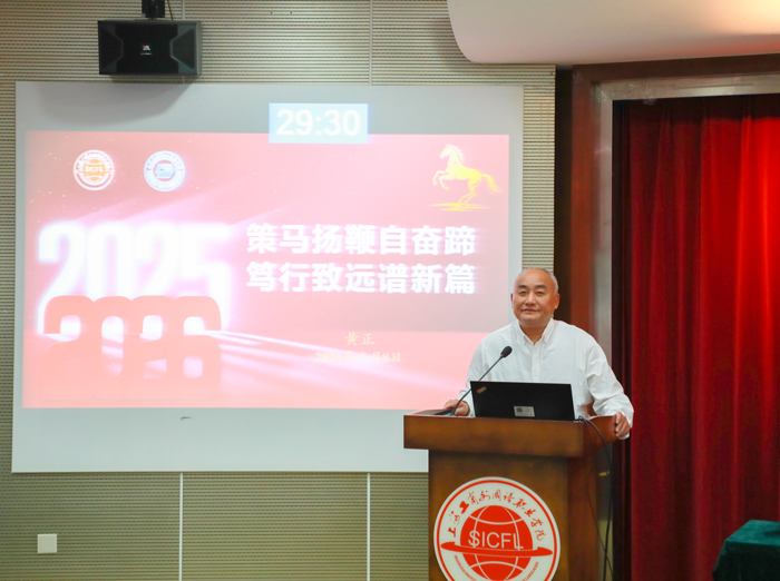 黄正校长在报告中全面回顾了2025年两校融合发展取得的“1+1>2”丰硕成果。过去一年,两校深度融合迈入实质阶段,党组织建设同频共振,部门协同构建高效联动机制,学科专业布局紧扣产业需求打造新兴集群,人财物资源实现科学优化配置,行政管理与教学安排全面统一,形成了管理协同、工作合力、成果共享的良好发展格局。