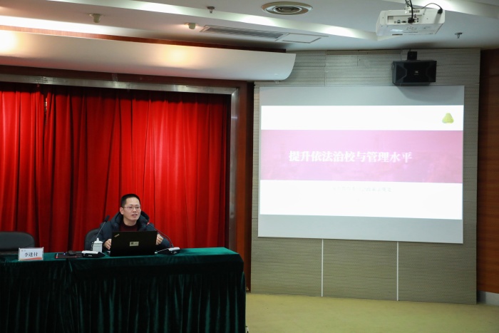 大会特别邀请上海市教育委员会政策法规处副处长李进付作“提升依法治校与管理水平”专题报告。讲座围绕政策背景、依法履职、法治思维及工作思考四大板块,深入解读习近平总书记关于教育的重要论述及《教育强国建设规划纲要》核心要求,结合教育法治新形势,明确法治核心定位,案例详实、剖析深刻,有效强化了与会干部的法治意识,为学校规范管理、合规发展提供了专业指导。