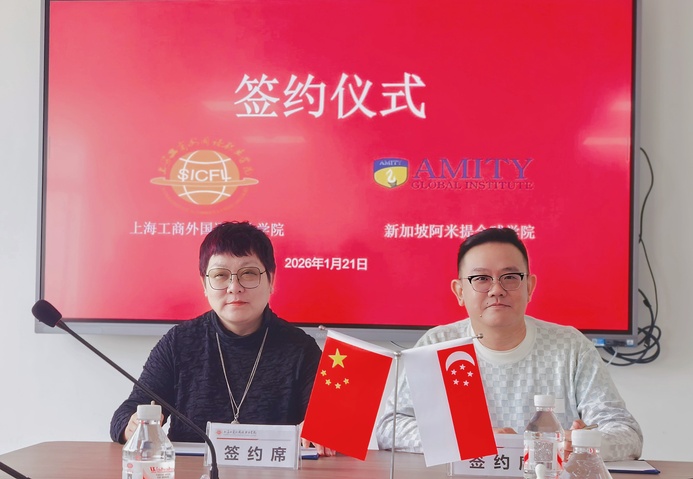 1月21日,新加坡阿米提全球学院(AmityGlobalInstitute,简称AGI)首席战略和增长官蔡声威(GavinChua)博士、高级总监刘洋(KarenLiu)博士、首席助理顾栢威(JefferyGu)一行莅临学校访问交流。上海工商外国语职业学院副校长谢敏,国际交流处处长李爱群、干事王晓珏及IPC课程中心相关负责人接待了来宾。双方正式签署合作备忘录(MOU),在国际升学、人才联合培养等核心领域达成多项共识,携手开启校际合作崭新篇章。