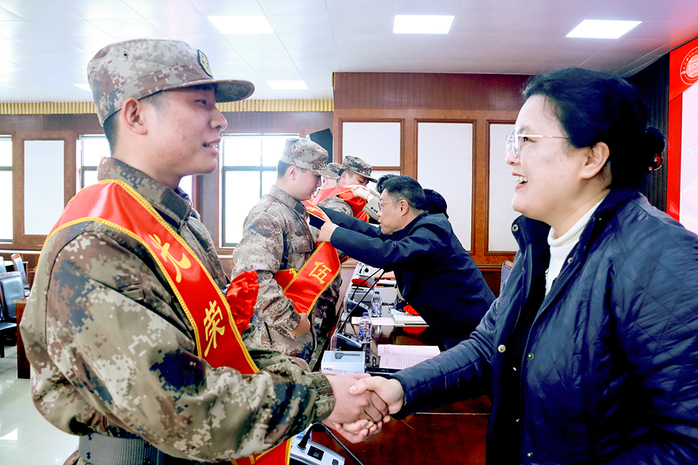 党委副书记、副校长张辉宣读两校学生入伍新兵名单,向即将入伍的新兵们表达真挚祝福和肯定,鼓励其在部队锤炼品格、展现风采,成就自我。
