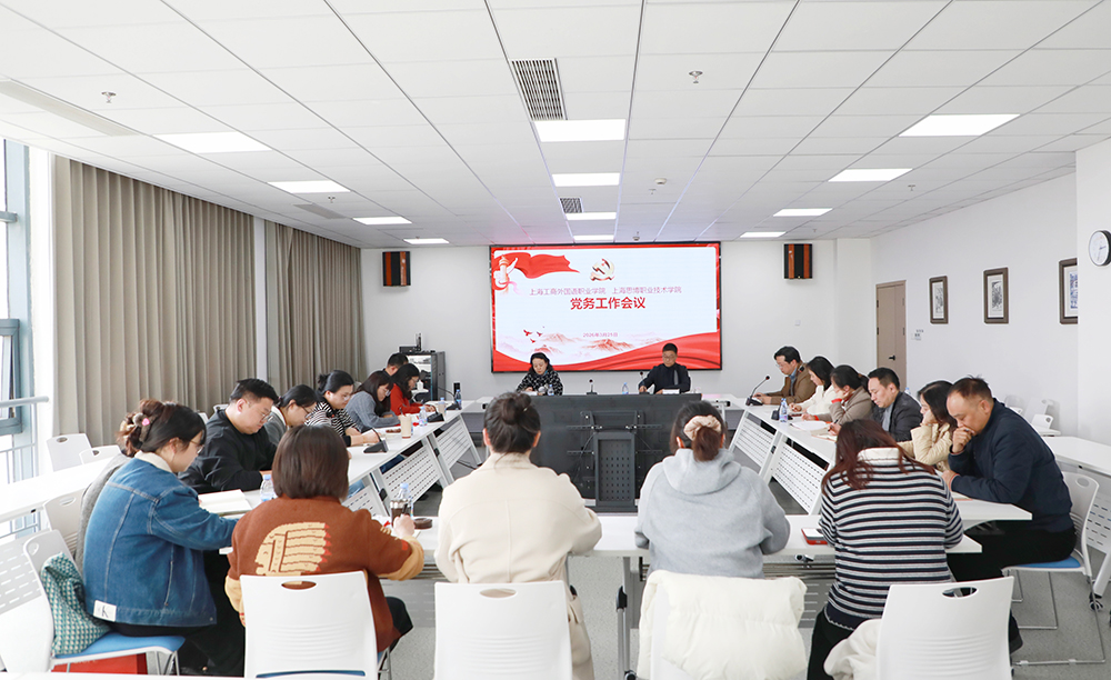 3月25日,两校召开2026年新学期党务工作会议。会议聚焦树立和践行正确政绩观学习教育工作推进,系统部署本学期党务重点工作。上海工商外国语职业学院党委书记万峰,上海思博职业技术学院党委副书记、副校长张辉出席会议,各党总支书记、直属党支部书记和党委职能部门负责人参加会议。组织部、宣传部、统战部负责人作专项工作部署。
